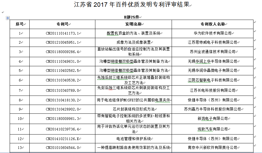 晶方科技专利“芯片封装结构及形成方法”被江苏省知识产权局评为“江苏省2017年百件优质发明专利”。