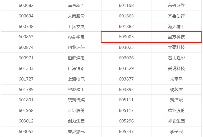 晶方科技纳入上证380指数名单